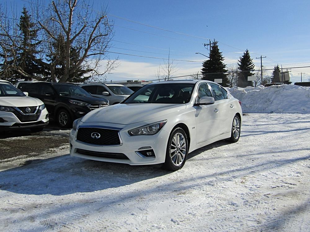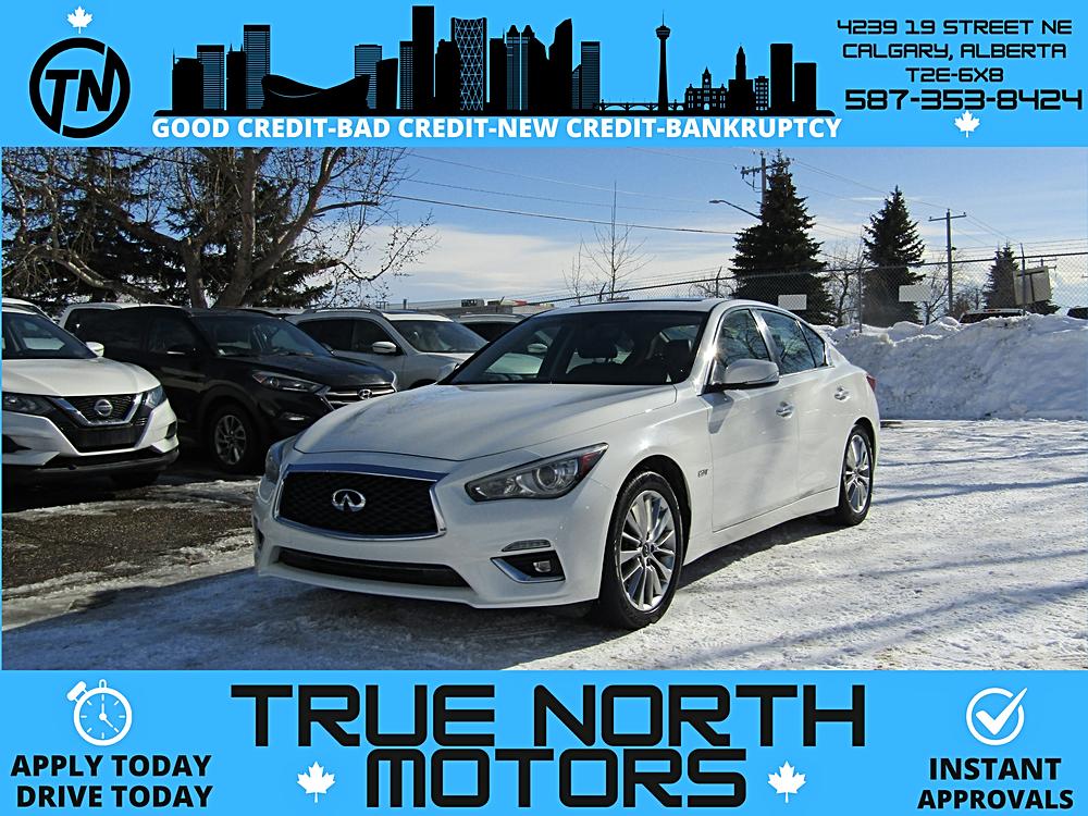 2018 INFINITI Q50 2.0T AWD PEARL WHITE EXTERIOR WITH BLACK LEATHER INTERIOR. OPTIONS INCLUDE NAVIGATION, BACK UP CAMERA, SUNROOF, HEATED…